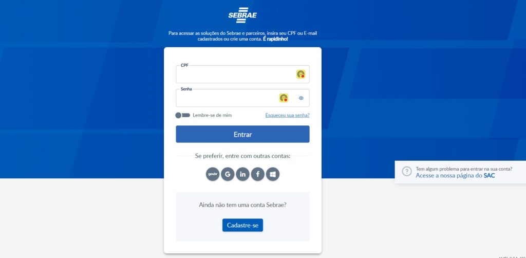 - Em seguida faça o login. Para isso, é necessário informar o CPF e senha e completar os dados cadastrais da sua empresa. Vá em ajustes e configurações da empresa.