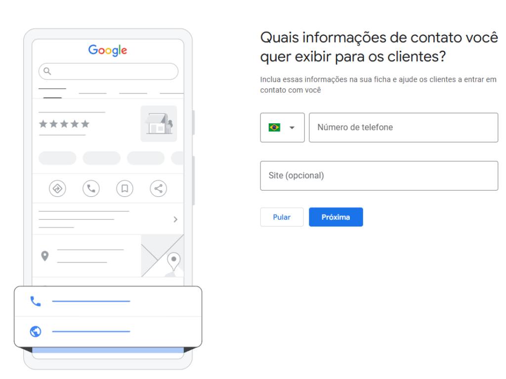 Por fim, o GMN vai pedir um número de celular ou telefone para contato. Esse número será importante para qualquer contato que a Google fizer com você, mas também para os clientes entenderem qual é seu número. Portanto, garanta que seu número está correto e preencha.