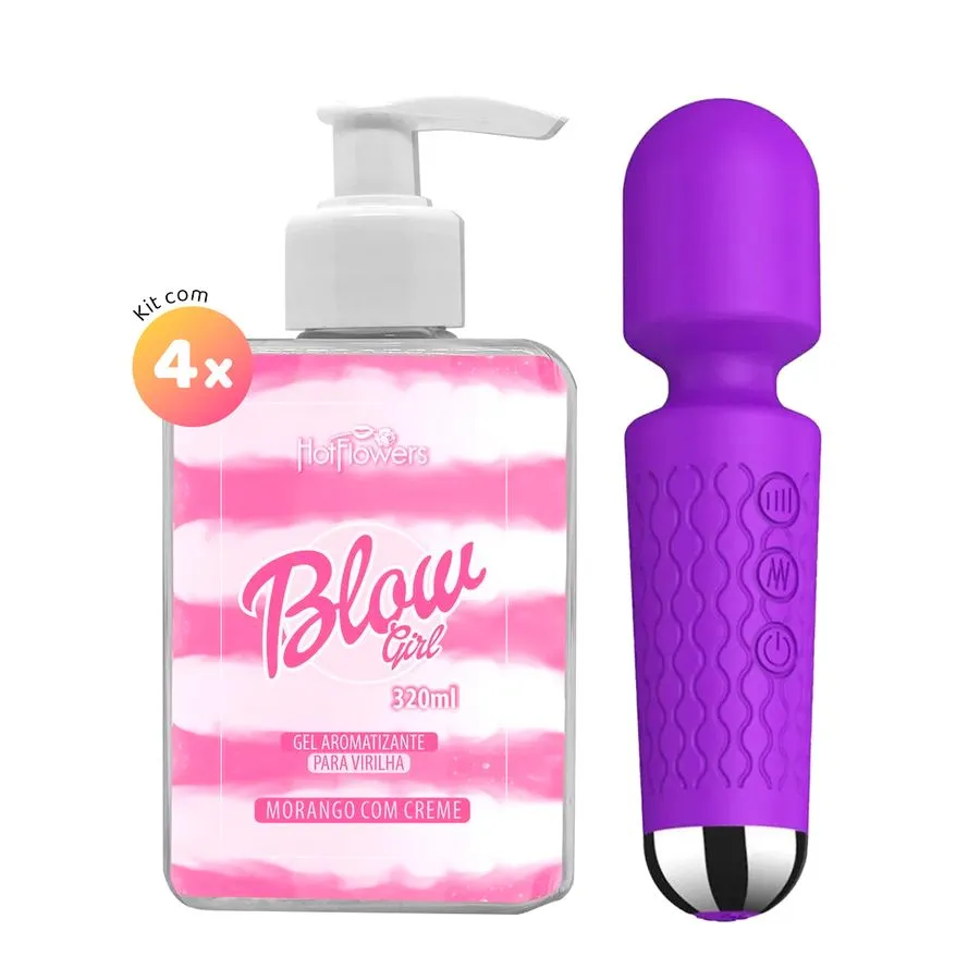 O combo traz quatro Blow Girl, um gel aromatizante beijável que deixa a pele aveludada e deliciosa, perfeito para quem ama toques e carícias intensas. E para elevar ainda mais a experiência, o kit inclui um Vibrador Varinha Mágica, um dos queridinhos do prazer solo, conhecido por suas vibrações poderosas e relaxantes.