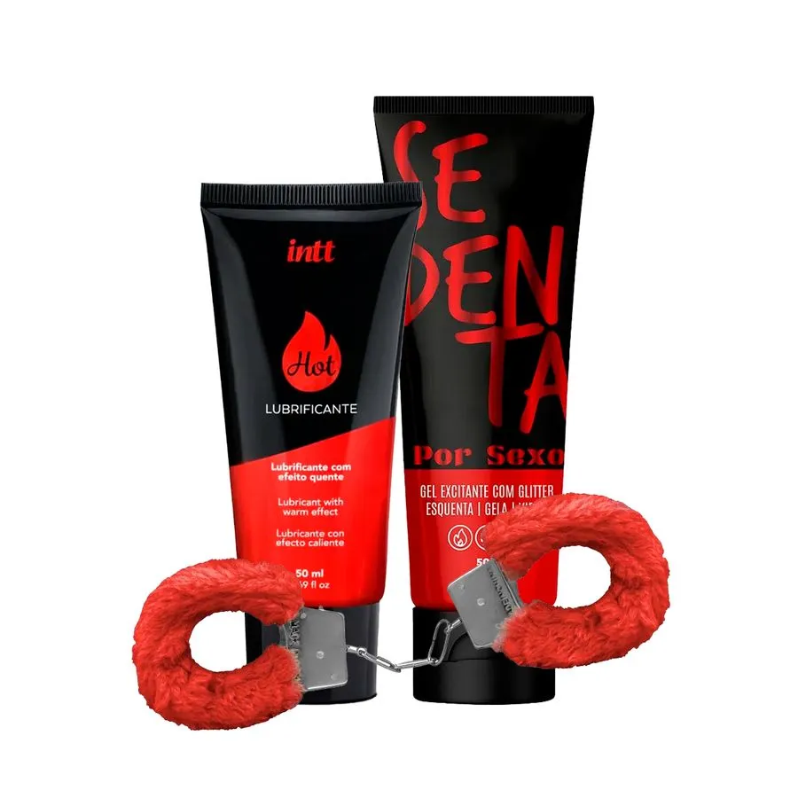 Kit com Lubrificante Hot Sedenta Por Sexo e Algema Pelúcia em Promoção